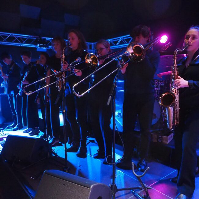 Koncertsalen på OE er bygget til formålet – med akustisk dæmpning designet til salen, stort lyd- og lydanlæg, professionelle mixere til begge dele og så store panoramavinduer med udsyn over Egebjerg Bakker. Når vi har koncerter med kunstnere udefra, og dem har vi 10-12 af hvert år, så er det her du oplever dem. Og det er også her du selv står på scenen, når vi har Musik & Lyrik, Musikteater, Nytårskoncert og store caféaftener. Glæd dig!