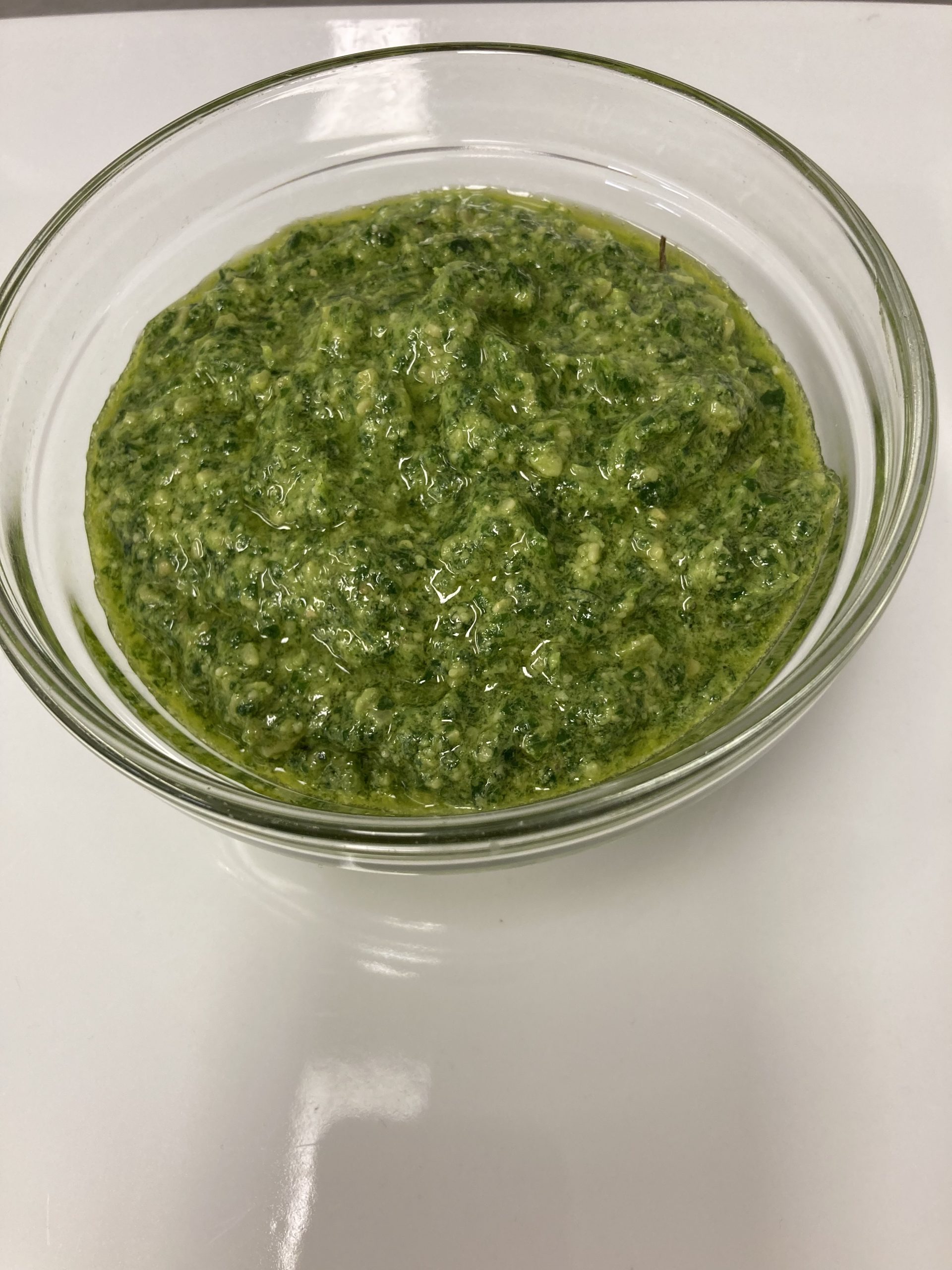 Gå til opskrift Udskriv Grønkålspesto Udskriv Pin Recipe Forb. tid 15 minutter min Ret: Tilbehør Ingredients Method Ingredienser 250 g hakket og skyllet grønkål4 spsk. græskarkerner2 fed hvidløg3 spsk. revet parmesan2 spsk. citronsaftolivenoliesalt, sukker, hvid peber efter smag Method Start med at blende kerner og hvidløg med lidt salt, derefter grønkålen, citronsaft og parmesan.Olien kommes i lidt efter lidt. mængden afhænger af hvor flydende man ønsker den.Smages til med sukker, salt hvid peber og citron. Tried this recipe?Let us know how it was! Share