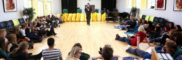 • Timerne kan indeholde workshops eller foredrag med kunstnere som bagefter afholder koncert på skolen.